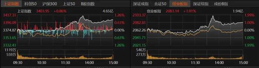 5月14日,A股上午低位震蕩,午后拉升走高。滬指收漲0.86%報3403.95點,創(chuàng)業(yè)板指收漲1.01%報2083.14點??苿?chuàng)50微漲,滬深300、上證50、北證50漲幅均超過1%。市場交投氛圍不錯,今日成交額達1.35萬億元。
