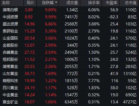貴金屬板塊震蕩走高