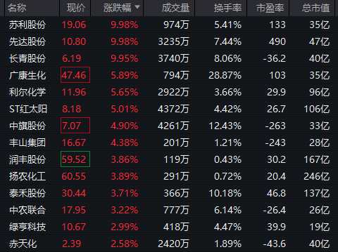農(nóng)藥股早盤走高,蘇利股份(603585)、先達股份(603086)、長青股份(002391)等漲停,ST紅太陽(000525)震蕩走高,一度觸及漲停。