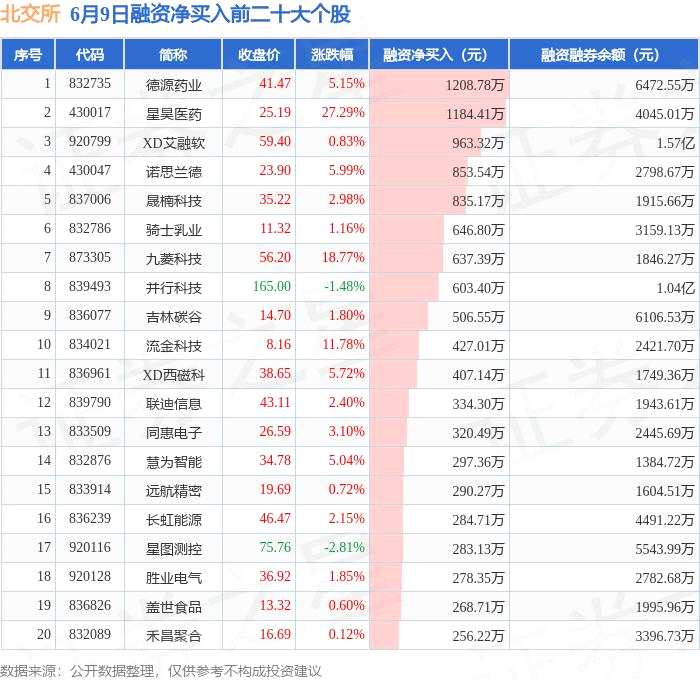 6月9日北交所融資凈買入排行榜:德源藥業(yè)融資凈買入居首