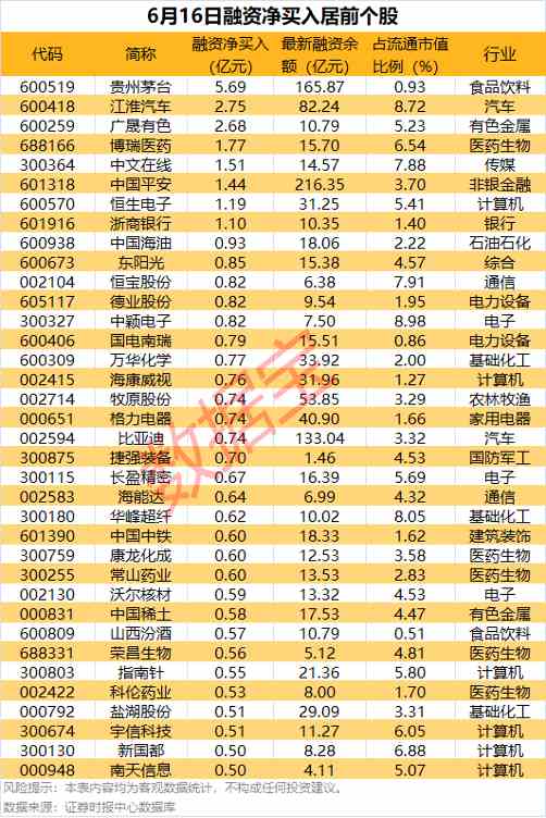 具體到個(gè)股,6月16日獲融資凈買(mǎi)入千萬(wàn)元以上的有377股,其中36股融資凈買(mǎi)入額超5000萬(wàn)元。