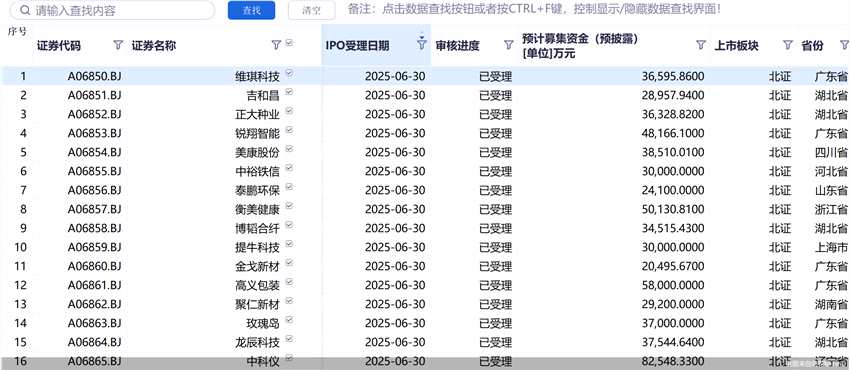 此外,2025年上半年,北京市企業(yè)摩爾線程、康美特、建工資源、金萬眾等9宗IPO獲受理,與山東省并列第六位。