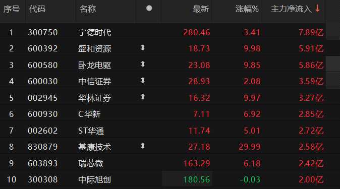 3股主力資金凈流入超5億元 寧德時(shí)代凈流入近8億元居首