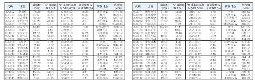 46股7月來獲杠桿資金凈買入逾2.5億元