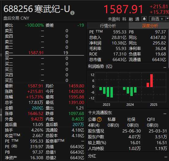寒武紀(jì)市值升破6600億元