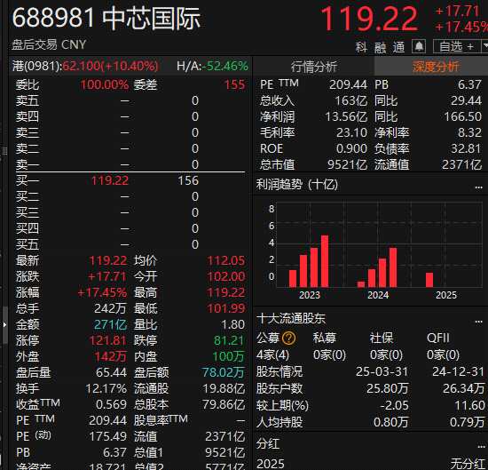 芯片概念集體上漲,中芯國際漲超17%,創(chuàng)歷史新高。