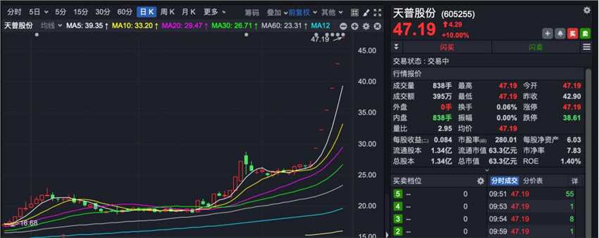 天普股份(605255)漲停,走出6連板,6天累計漲幅達(dá)77.14%。