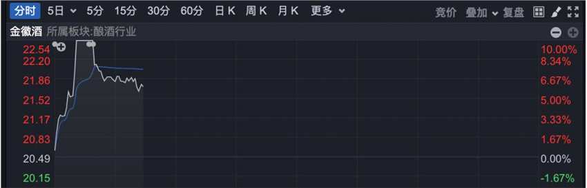 另外,白酒股持續(xù)拉升。金徽酒(603919)一度封板漲停,舍得酒業(yè)(600702)、老白干酒(600559)、酒鬼酒(000799)、古井貢酒(000596)、皇臺酒業(yè)(000995)跟漲。