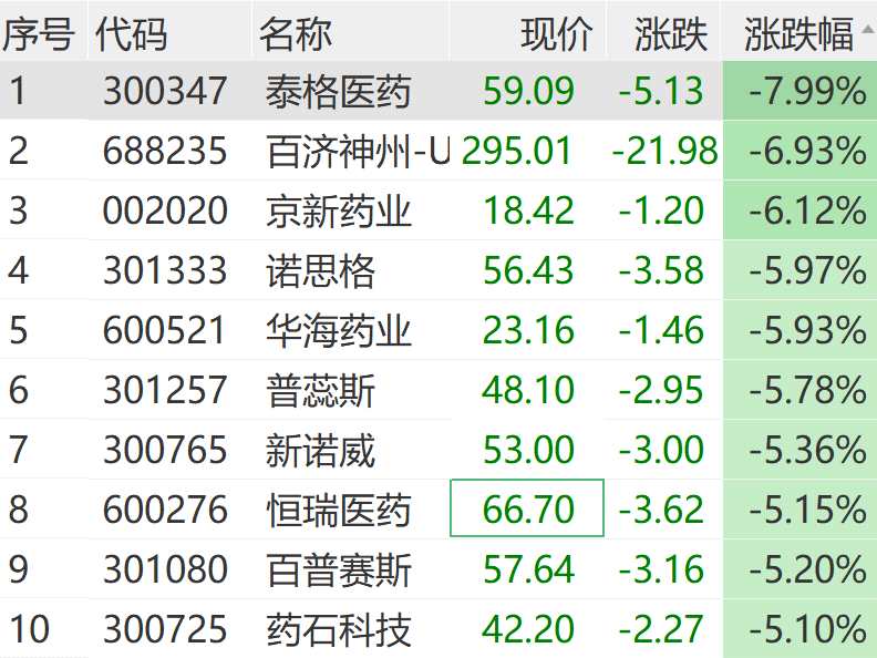 百濟(jì)神州、新諾威(300765)、泰格醫(yī)藥(300347)等走低,但跌幅較盤初已有明顯收窄。
