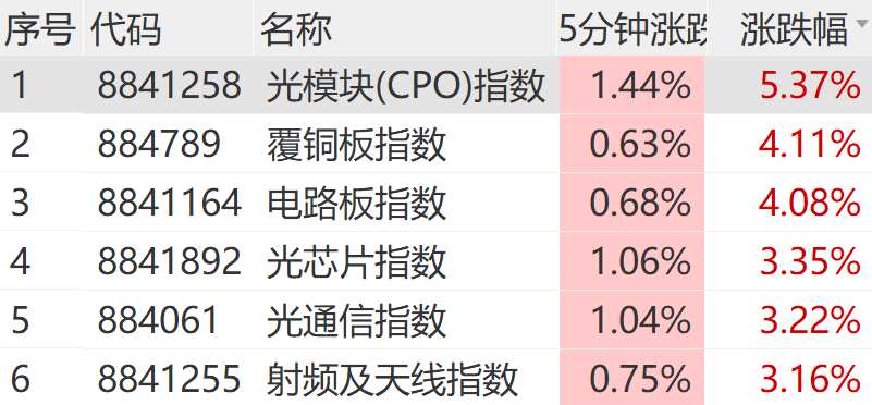 【導(dǎo)讀】光模塊、PCB概念股拉升走高,四會(huì)富仕(300852)走出20cm漲停,工業(yè)富聯(lián)(601138)盤中漲停
