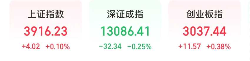 今天,A股三大股指分化。截至收盤,上證指數(shù)上漲0.1%,深證成指下跌0.25%,創(chuàng)業(yè)板指上漲0.38%。