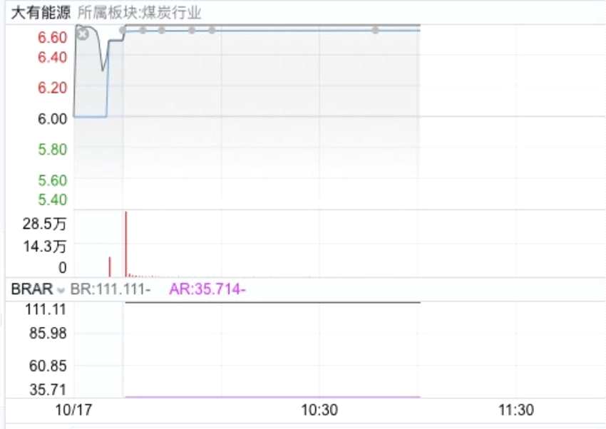 煤炭開(kāi)采概念17日延續(xù)強(qiáng)勢(shì),大有能源(600403)開(kāi)盤(pán)1分鐘漲停,走出6天5板,安泰集團(tuán)(600408)2連板。