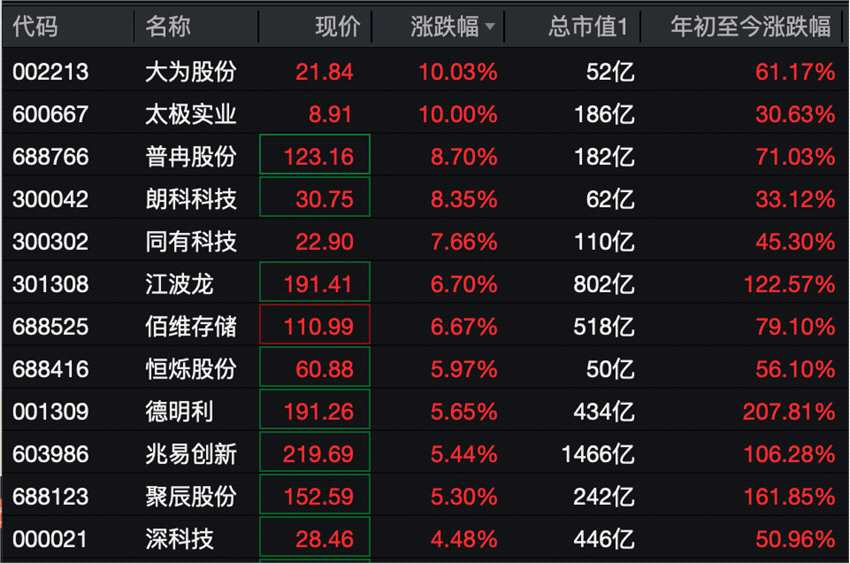 早盤,存儲器概念板塊漲近4%,大為股份、太極實業(yè)(600667)漲超10%,兆易創(chuàng)新、德明利、江波龍、同有科技等股漲超5%。