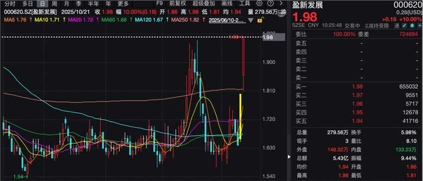 另外,房地產(chǎn)板塊走高,【盈新發(fā)展(000620)、股吧】2連板,財(cái)信發(fā)展、合肥城建漲停,新城控股、珠江股份、深振業(yè)A、香江控股、深物業(yè)A(000011)跟漲。