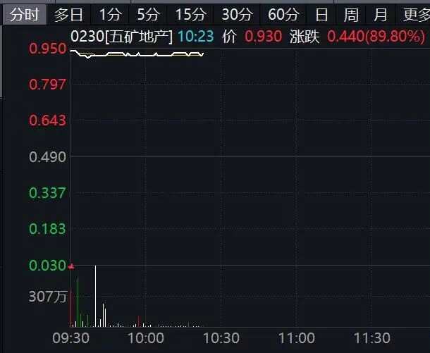 港股五礦地產(chǎn)復(fù)牌一度漲超90%。