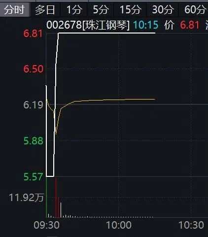 個(gè)股方面,珠江鋼琴(002678)(002678)盤中漲停,上演“地天板”,現(xiàn)報(bào)6.81元,成交額超5億元。此前,珠江鋼琴走出5天3板。10月23日晚間,珠江鋼琴公告,近期公司經(jīng)營(yíng)情況及內(nèi)外部經(jīng)營(yíng)環(huán)境未發(fā)生重大變化;公司未發(fā)現(xiàn)近期公共傳媒報(bào)道了可能或已經(jīng)對(duì)公司股票交易價(jià)格產(chǎn)生較大影響的未公開(kāi)重大信息。