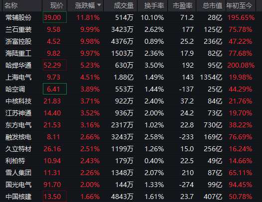 A股核聚變板塊盤初走高,常輔股份漲超10%,蘭石重裝(603169)、浙富控股(002266)、海陸重工(002255)漲停。