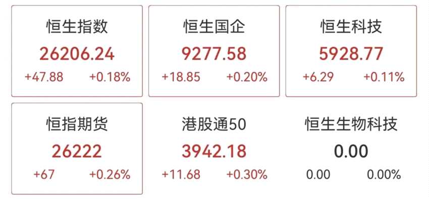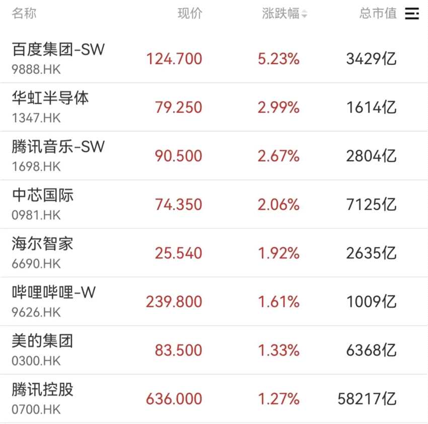 港股方面,三大指數(shù)悉數(shù)走高,百度集團(tuán)漲超5%,華虹半導(dǎo)體、騰訊音樂、中芯國際均漲超2%。