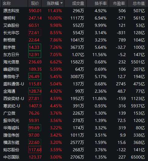 此外,德明利(001309)漲停,艾森股份、長光華芯、新相微等跟漲。