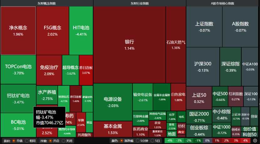 盤面上,資金繼續(xù)高低切換,銀行、石油天然氣、白色家電、醫(yī)藥等概念收紅,電源設備、輸變電設備、第四代半導體、BC電池、鈣鈦礦電池、超導概念、HIT電池等概念跌幅較大。
