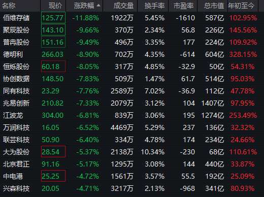 存儲芯片概念股大面積低開,佰維存儲跌超11%,聚辰股份、普冉股份、德明利(001309)等跌超8%。