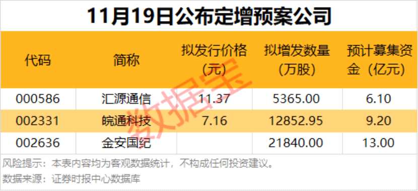 11月19日共有3家公司公布非公開發(fā)行預(yù)案。