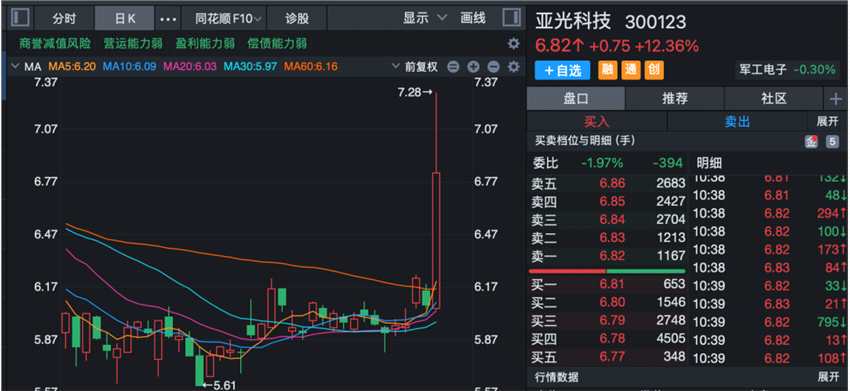 軍工股震蕩拉升,亞光科技(300123)一度觸及“20cm”漲停,最新漲幅為12.36%;江龍船艇(300589)漲超10%,北方長龍(301357)、國瑞科技(300600)、天海防務(wù)(300008)、天和防務(wù)(300397)等紛紛沖高。機構(gòu)研報指出,從業(yè)績角度來看,軍工概念季度報表已顯示出逐季改善趨勢。