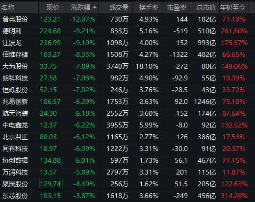 此外,存儲(chǔ)芯片概念股集體走弱,江波龍(301308)、德明利(001309)、佰維存儲(chǔ)等均跌超8%。