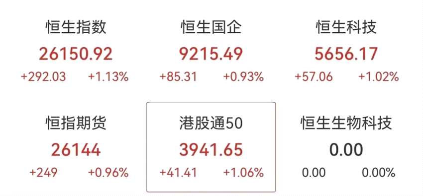 港股方面,恒生指數(shù)、恒生科技指數(shù)漲超1%,京東健康、阿里巴巴、同程旅行等漲超2%。