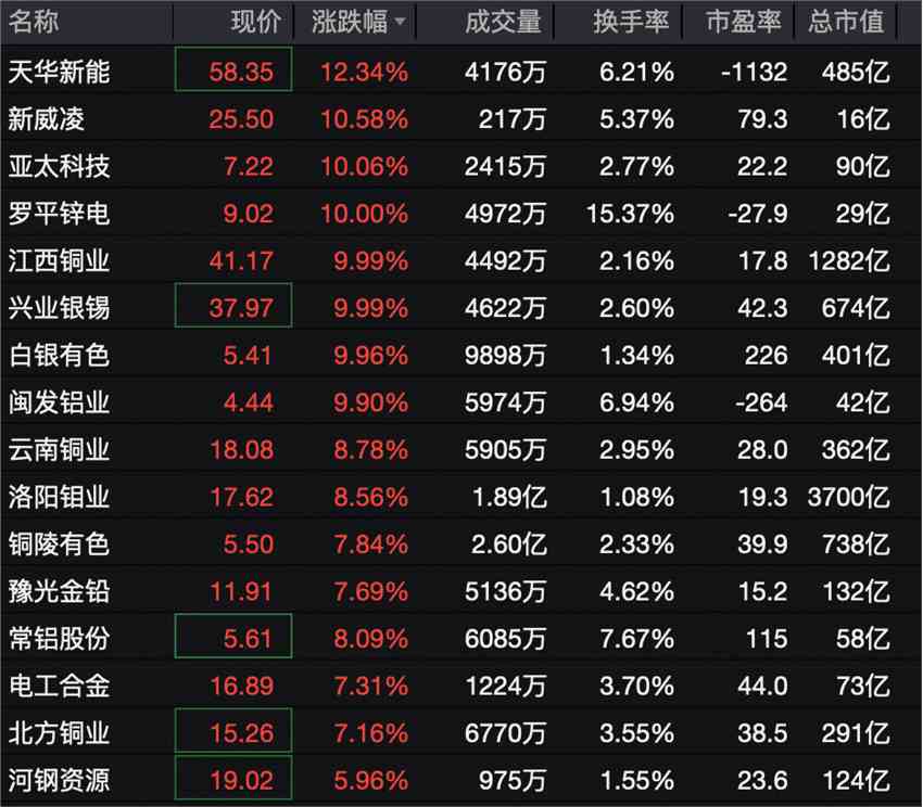 基本金屬板塊快速拉升,亞太科技(002540)、羅平鋅電(002114)、江西銅業(yè)、白銀有色(601212)等多股漲停。