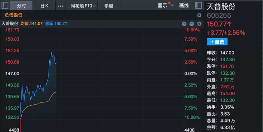 十倍大牛股天普股份(605255)結(jié)束停牌核查后,12月3日復(fù)牌,開盤一度跌停,隨后拉升,截至發(fā)稿漲幅為2.56%。