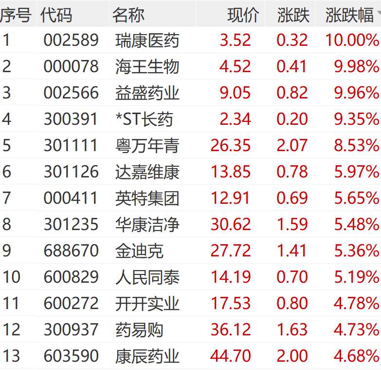 12月3日上午,A股醫(yī)藥商業(yè)板塊走高,抗流感概念股反復(fù)活躍。海王生物走出6連板,買(mǎi)一封單近43萬(wàn)手;瑞康醫(yī)藥(002589)、益盛藥業(yè)(002566)等漲停,粵萬(wàn)年青(301111)、人民同泰(600829)等跟漲。