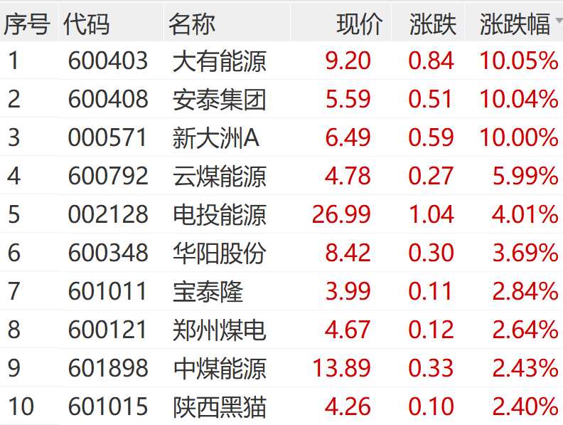 12月3日上午,煤炭開(kāi)采概念盤(pán)中發(fā)力,大有能源(600403)、安泰集團(tuán)(600408)、新大洲A(000571)等直線拉升漲停,云煤能源(600792)、電投能源(002128)等跟漲。