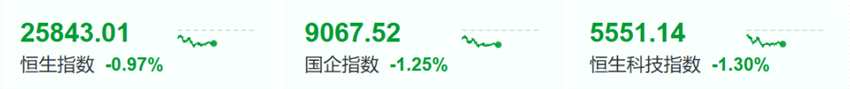 港股市場(chǎng)同步下挫。截至午間收盤(pán),恒生指數(shù)跌近1%,恒生科技指數(shù)、恒生國(guó)企指數(shù)跌超1%;金蝶國(guó)際跌超5%,領(lǐng)跌恒生科技指數(shù)成份股。