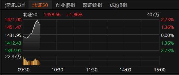 摘要: 12月16日早盤,三大指數(shù)低開低走,北證50指數(shù)逆勢走高,盤中一度漲超2%,截至發(fā)稿,漲幅有所回落,現(xiàn)報1458.66點。成分股中,云星宇漲近17%,奧迪威、戈碧迦、機科股份等漲幅居前。
