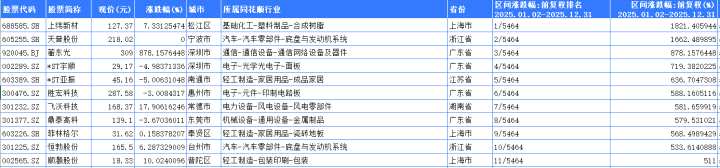 翻看A股上市公司全年漲幅前10的公司,廣東省成為最大贏家,共有4家上市公司(蘅東光、*ST宇順(002289)、勝宏科技(300476)、鼎泰高科(301377))進入漲幅榜前10,浙江(天普股份(605255)、恒勃股份(301225))和上海(上緯新材、菲林格爾(603226))并列第二,各有2家上市公司上榜。