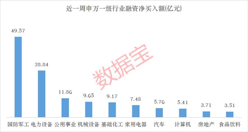 分行業(yè)來看,國防軍工、電力設(shè)備、公用事業(yè)排名前三,融資凈買入額依次為49.57億元、28.84億元和11.86億元;機(jī)械設(shè)備、基礎(chǔ)化工凈買入額也均超過9億元。通信、非銀金融、醫(yī)藥生物、電子則遭到融資凈償還額均超10億元,依次為35.75億元、20.8億元、14.11億元、10.08億元。