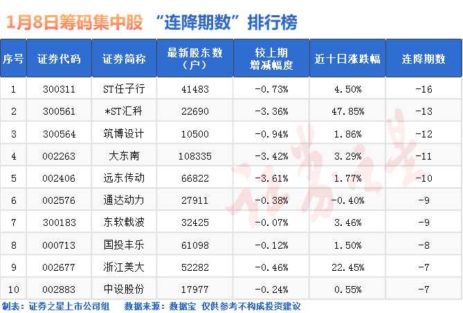 具體來看,除ST股外,筑博設(shè)計(jì)股東戶數(shù)已經(jīng)連降12期;大東南股東戶數(shù)已經(jīng)連降11期。