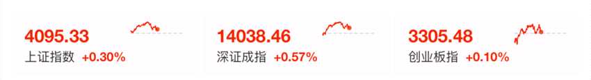 截至午間收盤(pán),滬指報(bào)4095.33點(diǎn),漲0.3%,深證成指漲0.57%,創(chuàng)業(yè)板指漲0.1%。