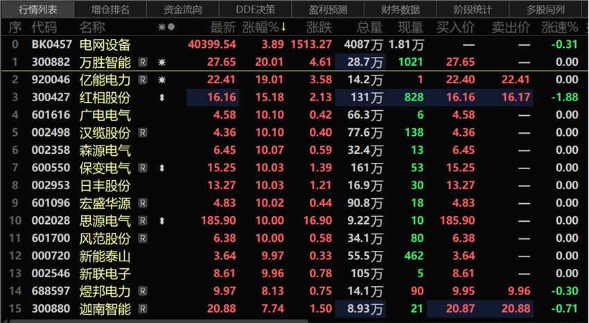 (邱思雨記者操子怡)1月16日早盤,電網(wǎng)設(shè)備概念股全線走高,截至10時(shí)07分,思源電氣(002028)、保變電氣(600550)、森源電氣(002358)等多股漲停,萬勝智能(300882)20CM漲停。