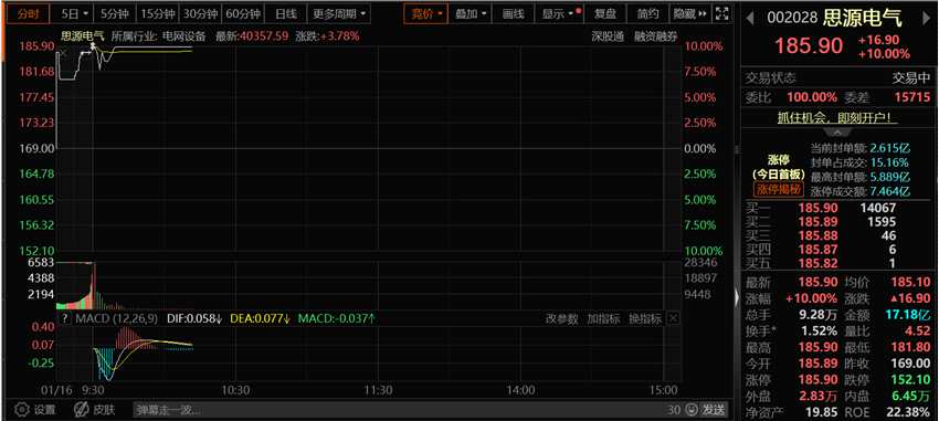 電網(wǎng)設(shè)備概念全線走高 思源電氣漲停