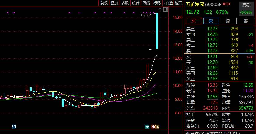 五礦發(fā)展盤中上演“天地板”