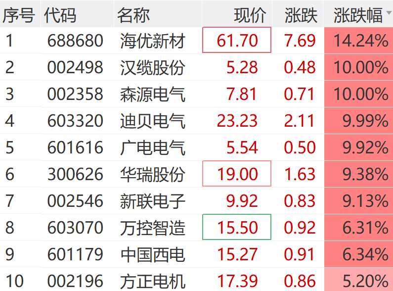 1月20日,電網(wǎng)設(shè)備板塊盤初火熱,森源電氣(002358)、漢纜股份(002498)、廣電電氣(601616)等均實(shí)現(xiàn)3連板,海優(yōu)新材漲超10%,新聯(lián)電子(002546)、萬控智造(603070)等跟漲。