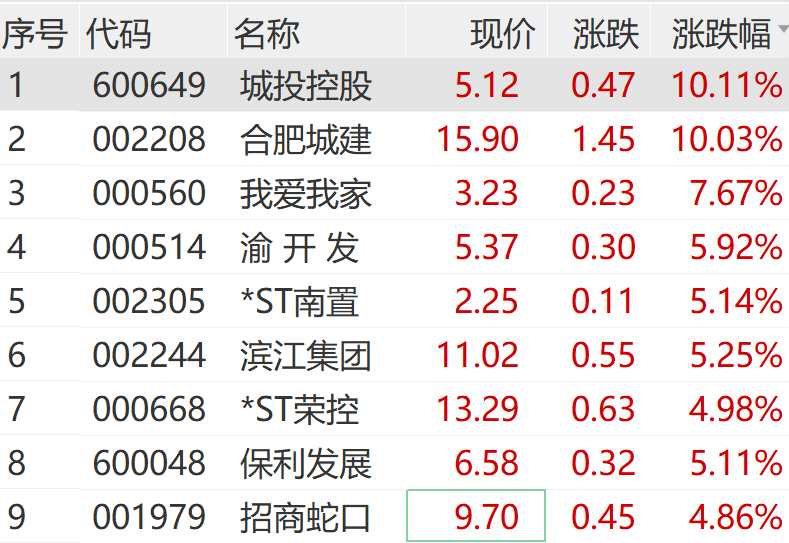 房地產(chǎn)板塊盤中拉升,城投控股(600649)、合肥城建(002208)雙雙漲停,保利發(fā)展(600048)、招商蛇口(001979)等跟漲。