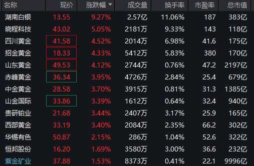 港股方面,靈寶黃金、大唐黃金、中國金黃金國際等漲超5%。