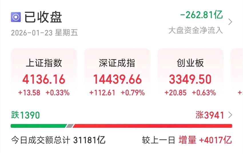 截至收盤(pán),滬指漲0.33%,深成指漲0.79%,創(chuàng)業(yè)板指漲0.63%,北證50指數(shù)漲3.82%。滬深京三市成交額為31181億元,較上一日放量4017億元,三市超3900只個(gè)股飄紅。