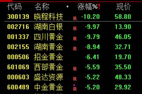 下跌方面,貴金屬板塊下挫,湖南白銀(002716)跌停。