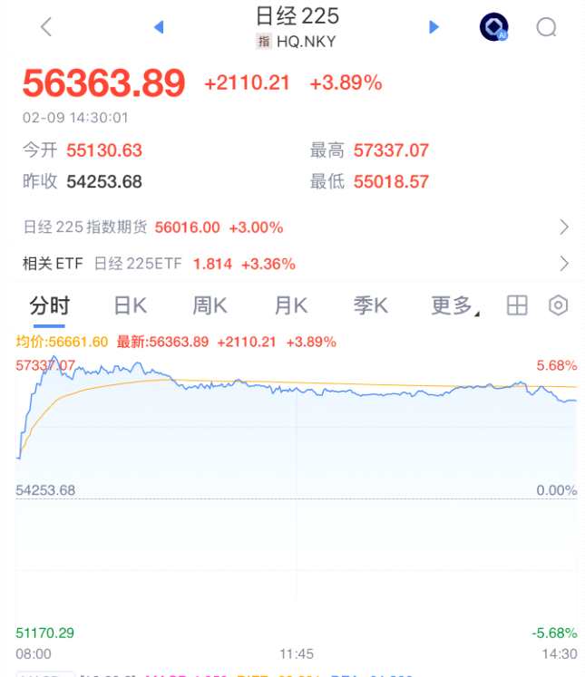 2月9日,MSCI亞太指數(shù)一度上漲2.4%,刷新歷史最高點(diǎn);被視為AI投資“風(fēng)向標(biāo)”的韓國KOSPI指數(shù)上漲4.1%。日經(jīng)225指數(shù)在高市早苗贏得大選后,一度大漲5.7%并創(chuàng)紀(jì)錄新高。這一切發(fā)生在美股上周五大約反彈2%之后,幫助市場收復(fù)了部分當(dāng)周跌幅。