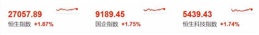 港股方面,三大指數(shù)均漲近2%。
