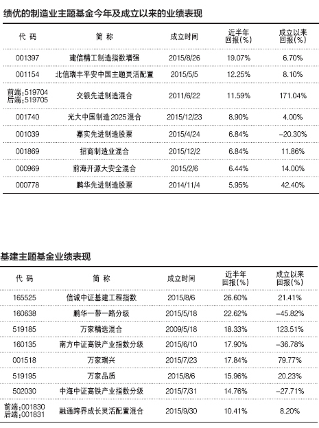 這些都表明,制造業(yè)將在未來幾年繼續(xù)迎來發(fā)展良機。不過這個領域也是夠寬泛的,涉及的個股成百上千,上述投研總監(jiān)就告訴理財不二牛,看好的高端制造業(yè)細分領域包括機器人、大飛機、芯片、智能設備等,另外輕資產(chǎn)型的裝備制造業(yè)例如汽車零配件的發(fā)展前景也不錯。那普通投資者應該怎么參與?理財不二牛通過親自肉測,精心為大家從茫茫“基”海中挑出了一些績優(yōu)的制造業(yè)主題基金(詳見表格)。